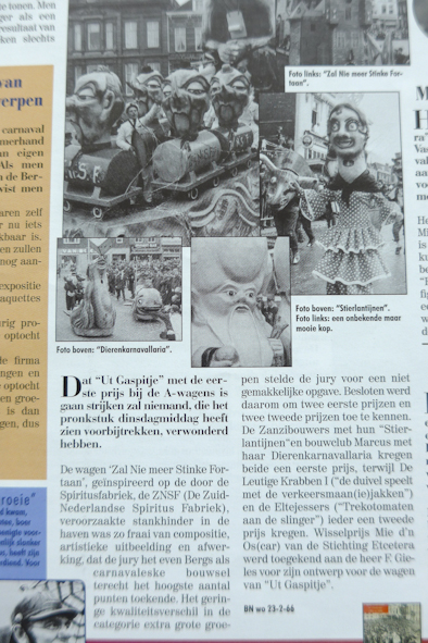 Een al wat serieuzere maar nog steeds humoristische wijze van protest was in 1966 zijn carnavalswagen Z.N.S.F.: ‘Zal Nie mir Stinke Fortaan’.