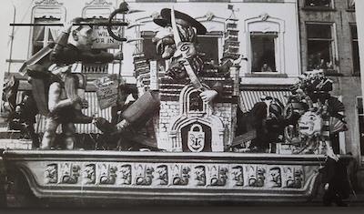 Carnavalswagen ‘Zal Nie mir Stinke Fortaan’, bouwclub ‘Ut Gaspitje’, 1966. De wagen won de eerste prijs.