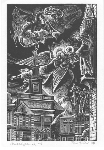 Een heel bijzondere wijze van protest was wel zijn nieuwjaarswens van 1987 getiteld ‘Apocalyps’. De nieuwjaarswens toont het laatste oordeel waarin een Engel het kindje Jezus redt uit de armen van Maria terwijl op de achtergrond het kwaad in de vorm van de Draak al klaar staat om vernietigend uit te halen. Een Apocalyps als nieuwjaarswens, je moet maar durven.