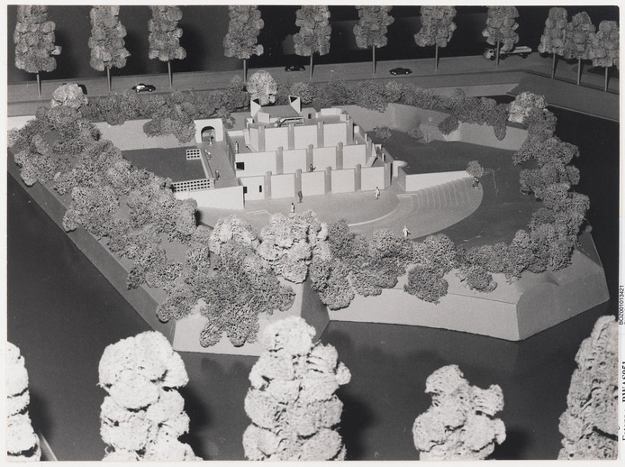Foto van de maquette met daarop zichtbaar de plannen voor de bebouwing.