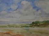 Zichte op Bergen op Zoom vanuit de slikken (?)
