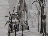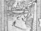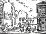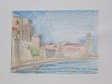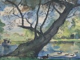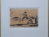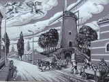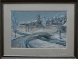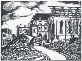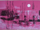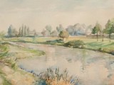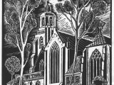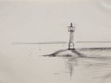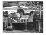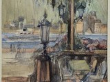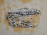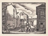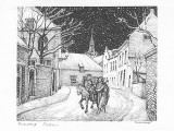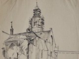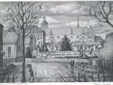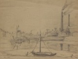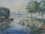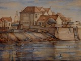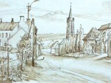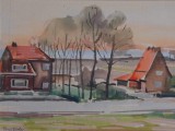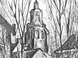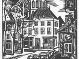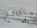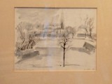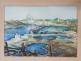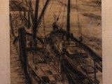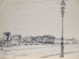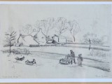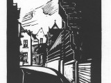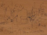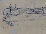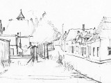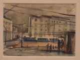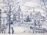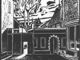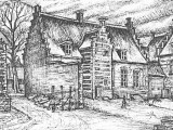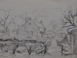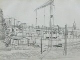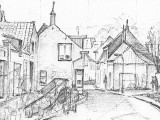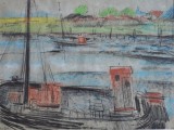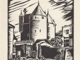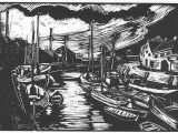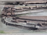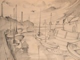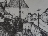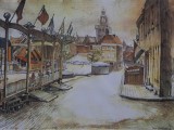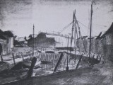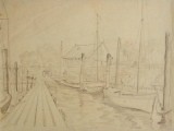Voorstudie voor de nieuwjaarswens uit 1954: de Oude Haven te Bergen op Zoom.