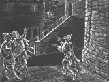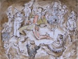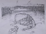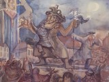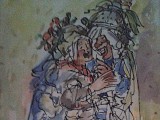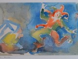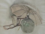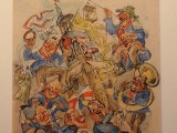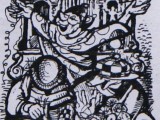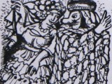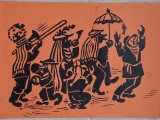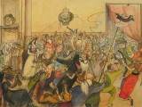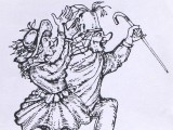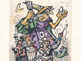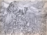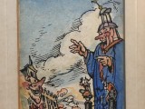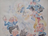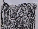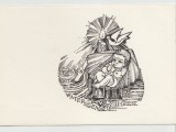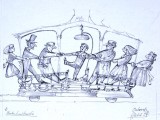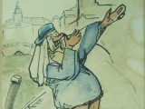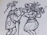 Detail van een illustratie bij het gedicht 'Ballade van dweilmaandag' van Kees Hagenaars in de carnavalskrant van 1983. Fons Gieles maakte vaker kopieen van eigen werk om die vervolgens voor andere gelegenheden speciaal in te kleuren en/of weg te geven. Zo ook bij deze afbeelding.
