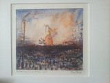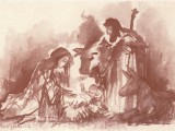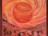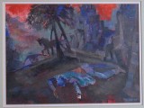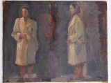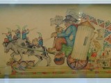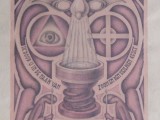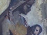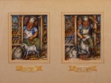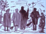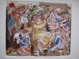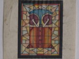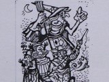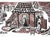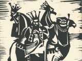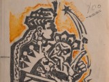 Kleurenvesrie van de 'Drie Koningen' gemaakt december 1946. Waarschijnlijk is de zwart-wit versie (ID 201) de eerste nieuwjaarswens (1947?) uit een lange reeks. Het getal 100 op deze afbeelding is mogelijk het aantal te maken afdrukken. Overigens spelen de Drie Koningen een belangrijke rol in het werk van Fons Gieles.