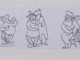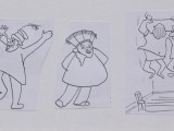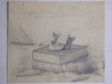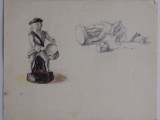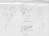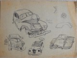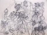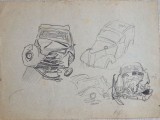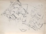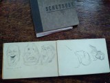 Schetsen uit een schetsboekje uit 1947. Vele snelle schetsen staan hierin, veelal van personen en carnavalskoppen.