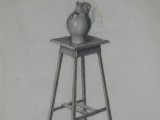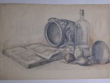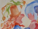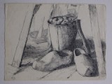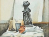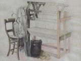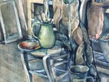 Stilleven met plant op de p[latte buis in het atelier van Fons Gieles aan de Cornelis Pronkstraat.