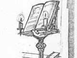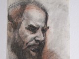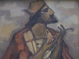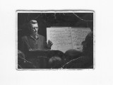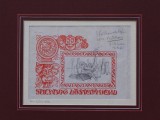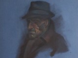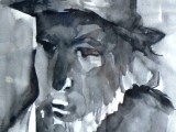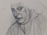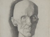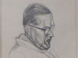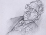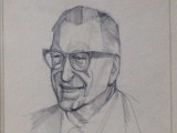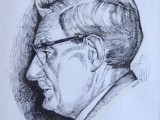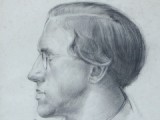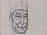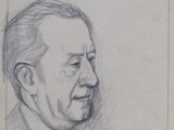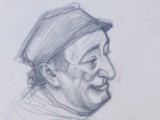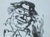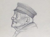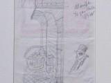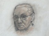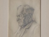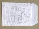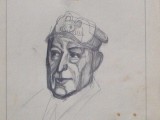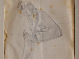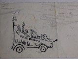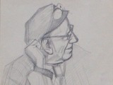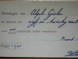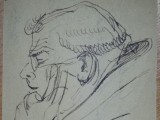 Foto van de kwitantie waarop Fons Gieles in 1952 een snelle schets maakte van een peinzende man met bril (nr 736)