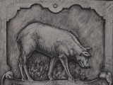 Schets van de gevelsteen St Antonius Ferken in de Steenbergstestraat 39 te Bergen op Zoom