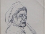 Schets van een boerin in het Eindhovens stadsdeel Gestel (Genneper parken) gemaakt tijdens zijn bezoek in 1991 aan Eindhoven