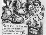 Heel wat krabben hebben elkaar met Carnaval leren kennen, zo ook het echtpaar Krijnen voor wie Fons Gieles deze afbeelding maakte.