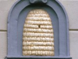 Foto van de gevelsteen De Biekorff (1474) in de Lieve Vrouwestraat te Bergen op Zoom