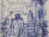 Voorstudie voor een later werk van het pand van de familie Snoek aan de Faurestraat 10. Dit werk kwam met het 'Gieles-in-huis' gebeuren (2018) naar boven.