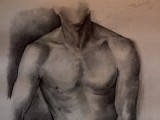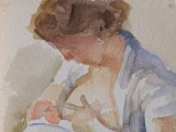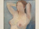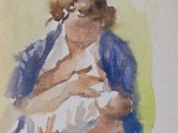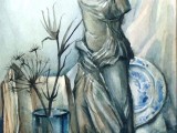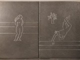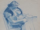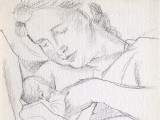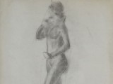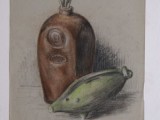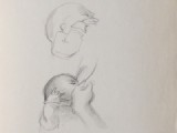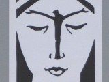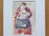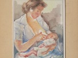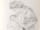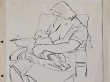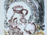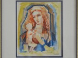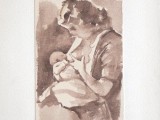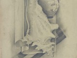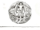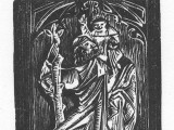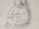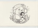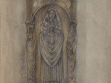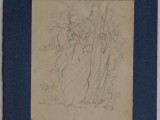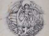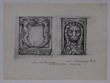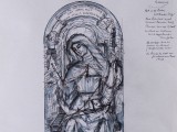 Ontwerp voor de gevelsteen Cornelis Pronkstraat 20 te Bergen op Zoom, lang het woonhuis van Fons Gieles. Links St. Lucas, patroonheilige van de schilders, rechts Maria met kinje Jezus.