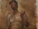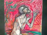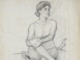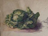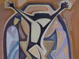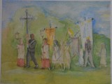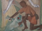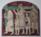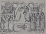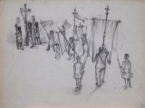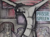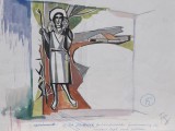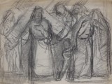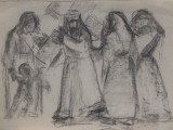 Statie V. 'Simon van Cyrene helpt Jezus' kruis dragen' (definitief ontwerp). De kruisweg was een opdracht van de Broeders van Huijbergen voor de Kweekschool te Breda. Hij werd gemaakt in de periode 1954 - 1956.