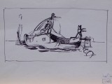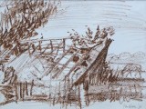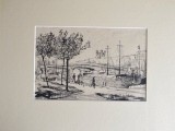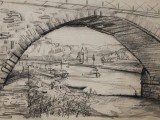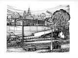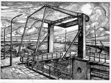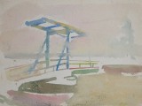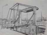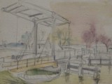 Brug over de Peeterssluis bij de Bergse haven. Voorstudie voor een opdracht van de fa. Beuken. De uiteindelijke pentekening (nr 730) is door hen gebruikt als nieuwjaarswens 1965/1966.