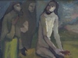 Statie I. 'Jezus tot de kruisdood veroordeeld'. De kruisweg was een opdracht van de Broeders van Huijbergen voor de Kweekschool te Breda. Hij werd gemaakt in de periode 1954 - 1956.