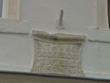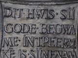 Foto van de gevelsteen met tekst 'DIT HVVIS SII GODE BECVVAME INT PEERDEKE IS SIINE NAME' in de Steenbergsestraat 24 te Bergen op Zoom