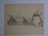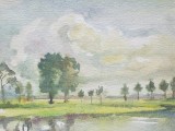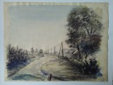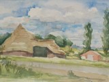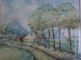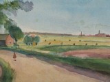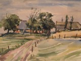 Landweggetje met electriciteitsmasten en enkele huizen. Gesigneerd 'A. Gieles, 28-8-1942 B.o.Z.'