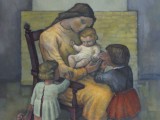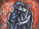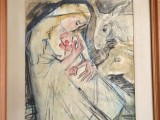 Statie IV. 'Jezus ontmoet zijn bedroefde moeder'. De kruisweg was een opdracht van de Broeders van Huijbergen voor de Kweekschool te Breda. Hij werd gemaakt in de periode 1954 - 1956.