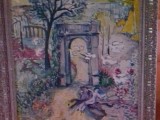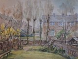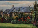 Achtertuin van Cornelis Pronkstraat 20. Fons Gieles maakte dit schilderij voor de achterburen van Pronkstraat no 8 waar dit schilderij op uitkijkt.