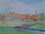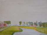 Zicht op de Peperbus gezien vanaf de Noordsingel nr 228. De opvallend grijze Peperbus in dit kleurige geheel heeft mogelijk te maken met de begrafenis van een goede kennis van Fons Gieles, Alfons Verdult. De aquarel werd op dezelfde dag gemaakt (26 mei 1986).