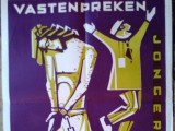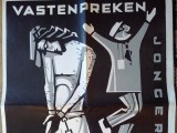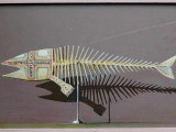 De toestand van de RK in de zeventiger jaren op bijzondere wijze weergegeven. Een rijk verzierde bisschopsmijter aan het hoofd van de kerk. De kaalgevreten visgraat symboliseert de leeglopende kerken.