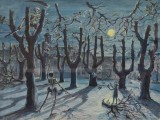 Fons Gieles werd geinspireerd tot de 'Dance macabre” toen hij over de Korenmarkt van Bergen op Zoom liep. Mensen van de gemeente waren de platanen aan het snoeien op het moment dat er kraaien en kauwen nestelden. Door het geweld ontstond er enorme onrust onder de vogels en jonkies vielen uit hun nest. De brute en ondoordachte manier van werken heeft hij verbeeld door de geraamtes die, met een zeis in de hand, door de boomtoppen razen.