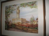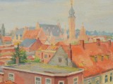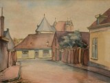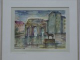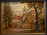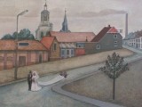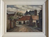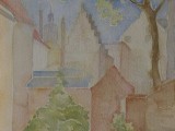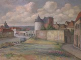 Zicht op de Gevangenpoort. Bep de Bruijn-Verdult kreeg dit schilderij van Fons Gieles bij gelegenheid van haar huwelijk op 24 oktober 1964. Haar vader heeft de ouders van Fons Gieles tijdens de oorlog geholpen waardoor een hechte vriendschap is ontstaan.