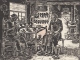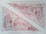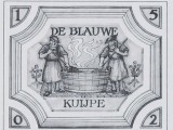 Ontwerp voor de gevelsteen van het pand aan de Blauwe Handstraat 35 te Bergen op Zoom. Twee wolververs roeren in een kraprood verfbad. Het verhaal achter de rode verf in de Blauwe Handstraat is te lezen in het blad de Waterschans van maart 2009: https://periodieken.westbrabantsarchief.nl/issue/DWS/2009-03-01/edition/0/page/8