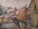 Zicht uit het atelier van Fons Gieles aan het Ketelwegje, de overkant van de Vijverberg