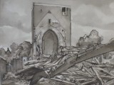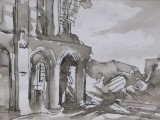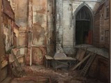 Zicht op zijbeuk van de Gertrudis in de steigers (na de brand)