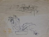 Schets van bloembak en (boven) op de zijkant van het atelier aan de Ketelweg