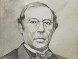 Fons Gieles maakte een serie van zes portretten van en voor de familie August Laane. Dit is Engelbert Vermeulen (1802-1875). Hij was de vader van Mathilda Laane-Vermeulen en getrouwd met Hélène de Martelaere (1811-1890).